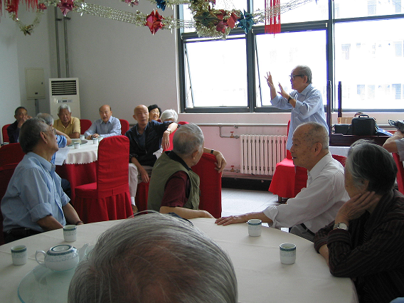 今年北京阴雨连绵,气象预报9月22日又有雨,而且又是奥运会结束后,开放车禁的第一天,大家都担心,雨天路滑,交通堵塞,可能来的校友不多,但出乎意外,规定9.30开会,8点多钟,就陆续有人来了,不仅有本市的,而且也有外地的,如从台湾回来的邵立恩夫妇很早就来了,人越来越多,原来预订三桌(每桌10人)坐不下了,四桌还多2人......我们都是七八十岁的老人,但我们依然一如既往,互相关怀,彼此帮助,虽然分散在天南海北,还能聚会在一起,这样的感情,不仅感动校友,而且感动校友的亲友,他们说:“真羡慕你们班这样团结”。