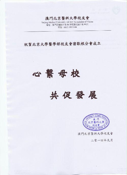 北医北加州校友会贺密歇根州校友会成立