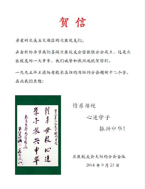 金秋十月,丹桂飘香。在这秋高气爽的日子,值此www.bt365.com密歇根分会成立之际,波士顿北医校友谨祝成立大会圆满成功。愿我们真诚合作,携手共进,为校友们提供交流互动的平台,为母校的蓬勃发展尽一份力。