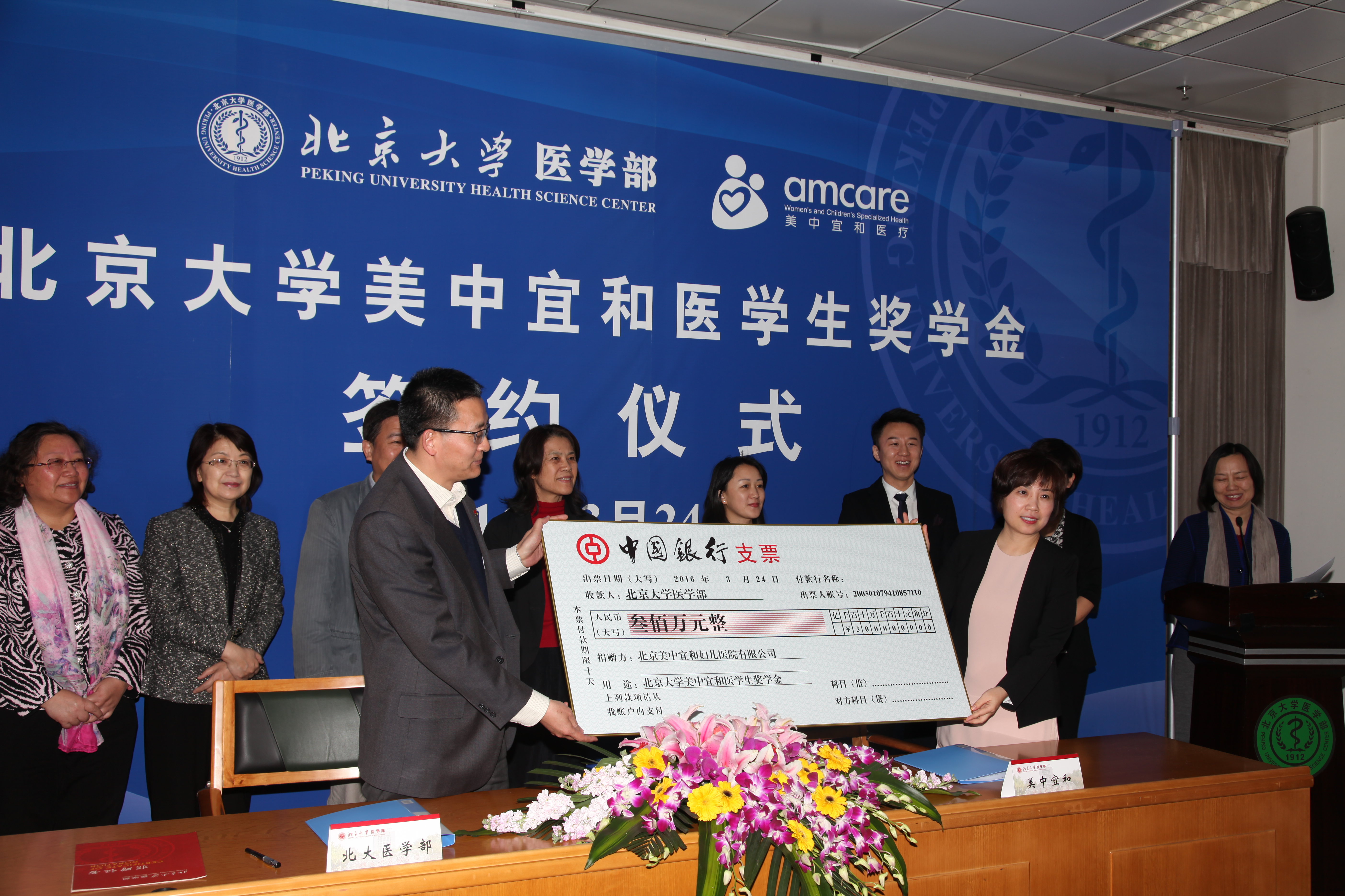 3月24日,在医学部逸夫教学楼114,北京美中宜和妇儿医院有限公司与北京大学医学部举行了“北京大学美中宜和医学生奖学金”签约仪式。美中宜和医疗集团CEO、北医1987级医疗系校友胡澜博士,美中宜和医疗集团CFO陈霄,美中宜和医疗集团人力资源副总裁程洪波,北京万柳美中宜和妇儿医院副院长谭春英,北京大学常务副校长、医学部常务副主任柯杨,医学部副主任王维民,医学部两办主任,医学教育基金办公室主任肖渊,医学部基础医学院党委副书记郭琦,北医三院副院长高炜,口腔医院副院长李铁军,医学部教育处副处长、学工部常务副部长李红,医学基金办副主任孙莉莉,还有来自美中宜和集团的北医毕业的医护人员代表,www.bt365.com、教育处以及学生代表们来到现场。签约仪式由北京大学医学部副主任段丽萍主持。